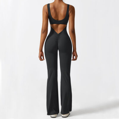 Women Sleeveless Flare Yoga Fitness JumpsuitsWomen Sleeveless Flare Yoga Fitness Jumpsuits