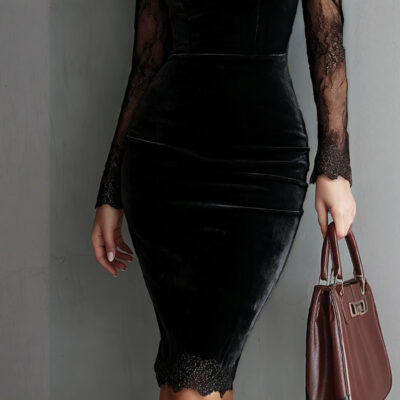 This midi dress features a sleek bodycon cut that contours to your shape, accentuating the waist and hips for a powerful, feminine silhouette. Delicate lace panels or trim are strategically placed, adding texture and a hint of provocative elegance. The full-length sleeves and solid color palette ensure a timeless yet bold appearance, making it ideal for cocktail parties, dinners, and evening galas.