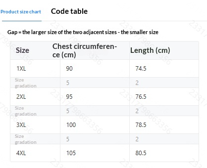| Size | 1XL, 2XL, 3XL, 4XL |